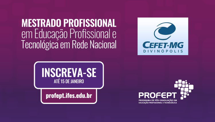 Inscrições abertas para o Mestrado em Educação Profissional e Tecnológica (Mestrado ProfEPT CEFET-MG)